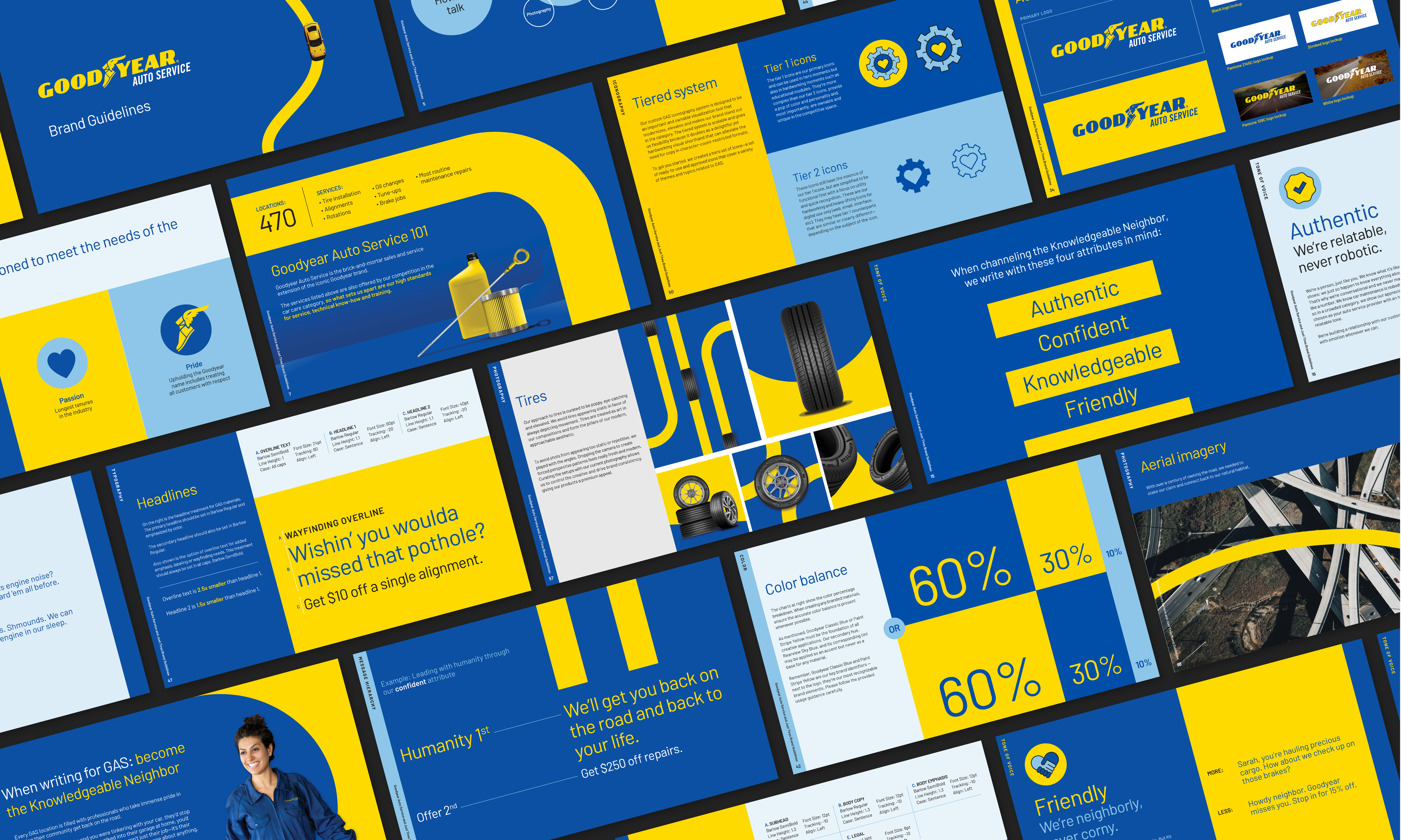 Rooted in Goodyear’s legacy of trust and expertise, we crafted a distinctive brand identity for Goodyear Auto Service—one that stands apart in the category while building on the masterbrand’s reputation for quality and high standards.